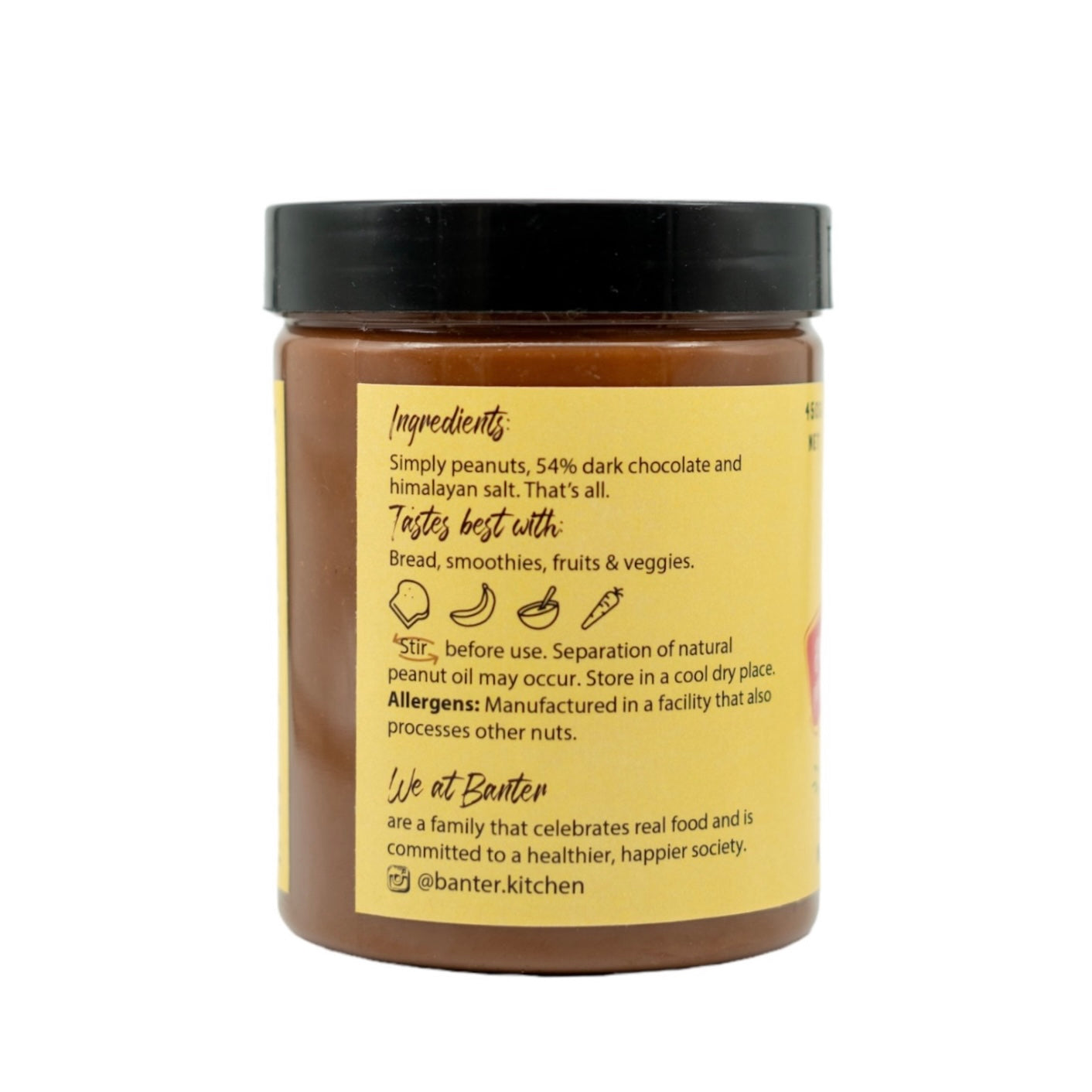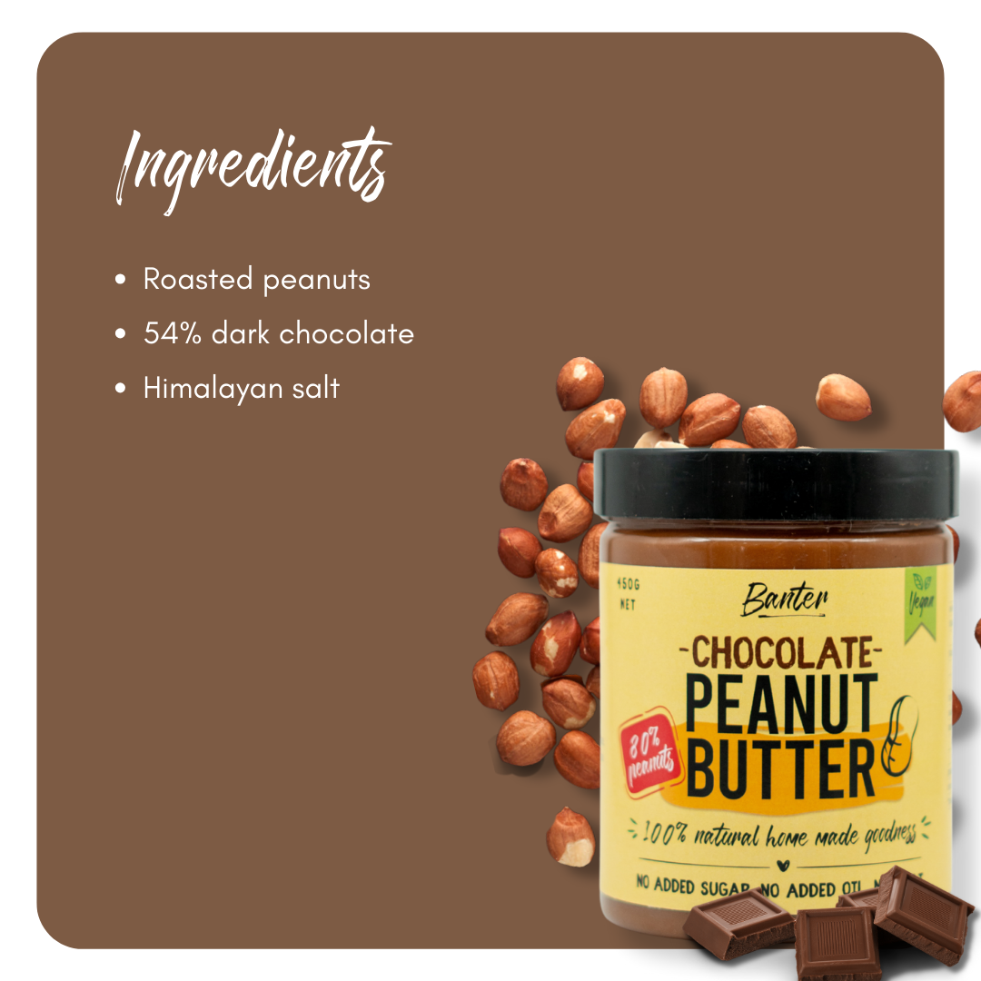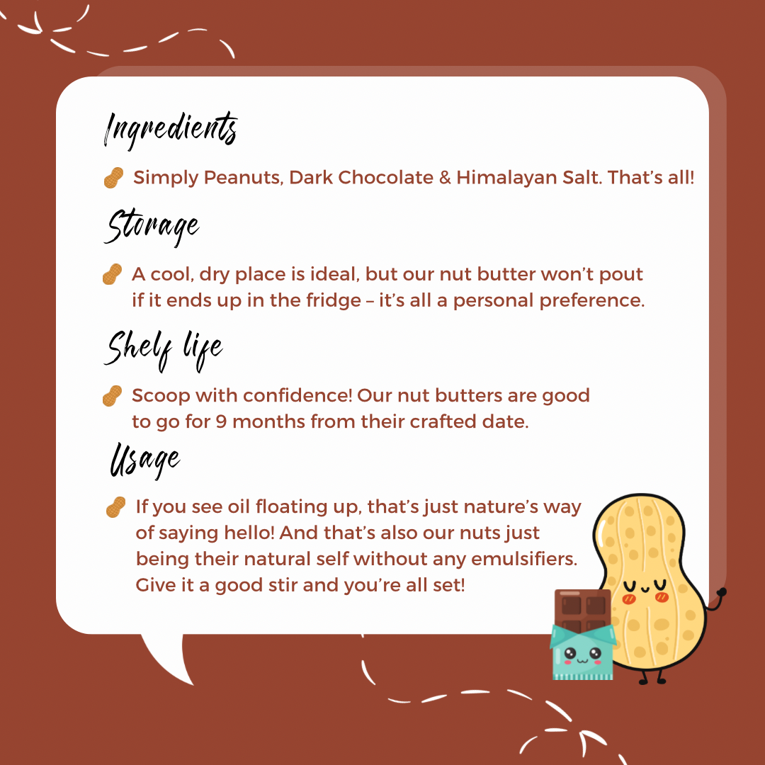 Picture this: 80% peanuts, a generous swirl of rich dark chocolate, and just a hint of Himalayan salt โ all mingling together in a jar of pure delight. It's like a chocolatey symphony for your mouth, and we can't wait for you to join the flavour party.