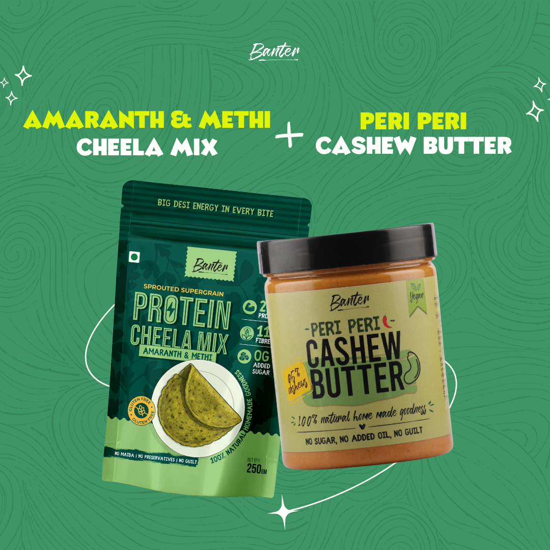 PERI PERI CASHEW BUTTER + AMARANTH-METHI CHEELA MIX