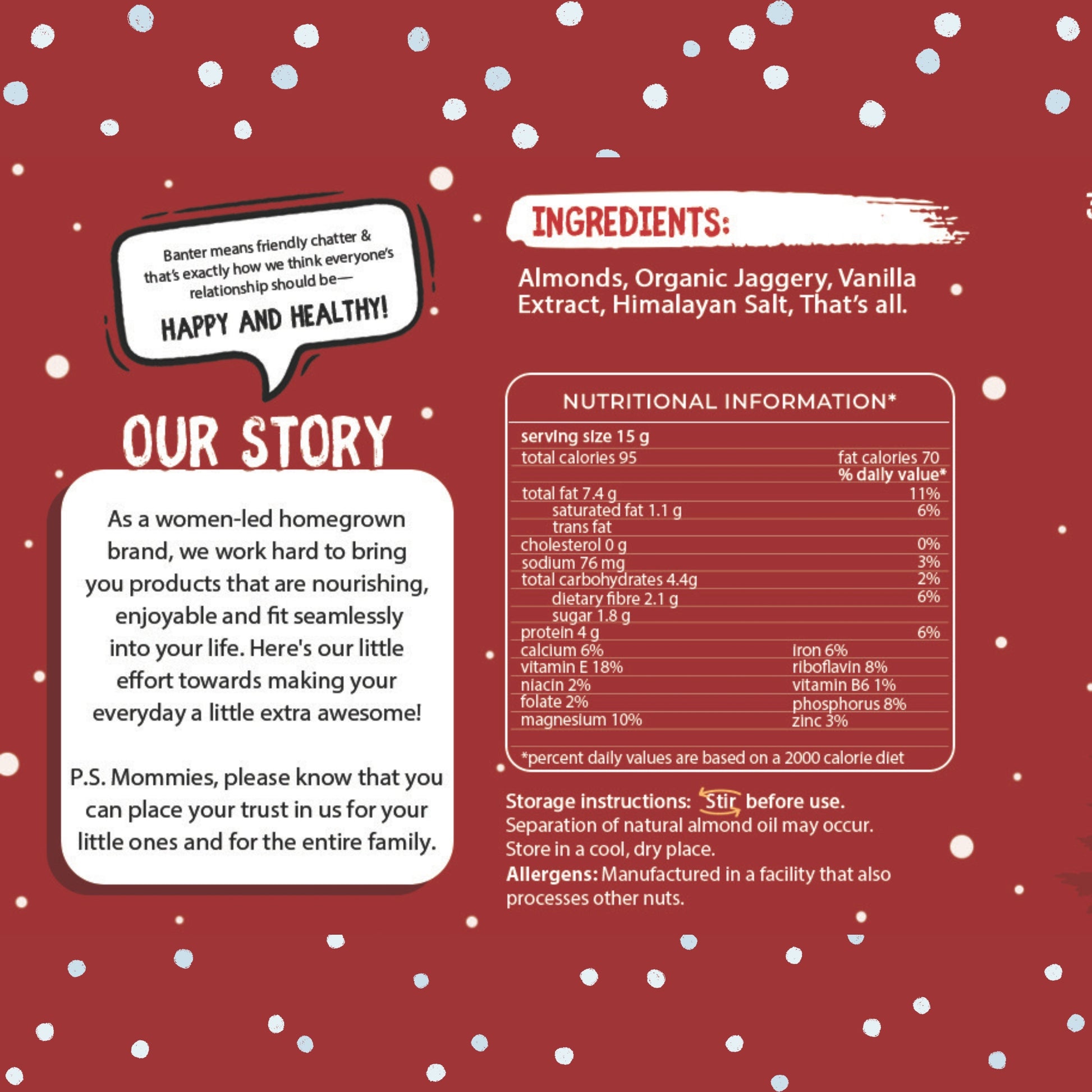 Almonds, Organic Jaggery, Vanilla Extract and Himalayan Salt
